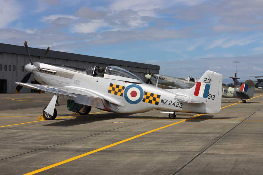 Mustang NZ 2423 taxis out at its RNZAF Ohakea base.