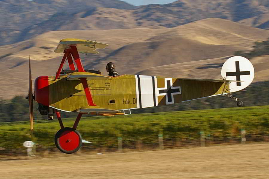 An aerial view of Wenzel's Fokker Dr.1 Triplane