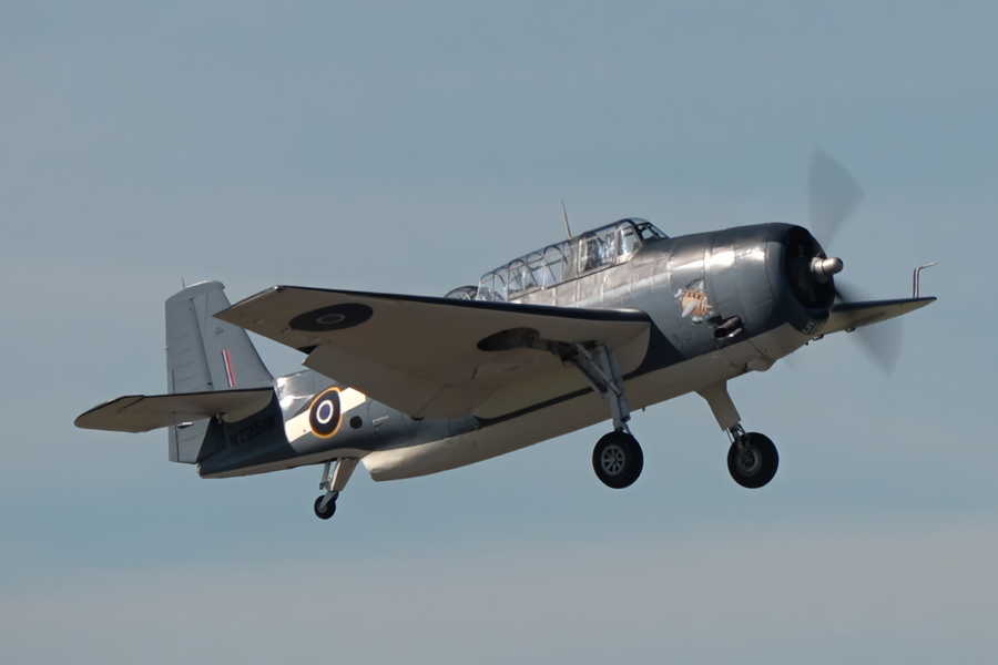 This aircraft was built in 1945 and has had a continuous flying history since then. It served in a training capacity at a number of US bases (incl San Diego and Pearl Harbour) until it was retired from service in 1954. Converted into an insecticide sprayer and used in forest protection operations in North America until 1992 it was then converted back to full military configuration for Ray Hanna’s Old Flying Machine Company in the UK.