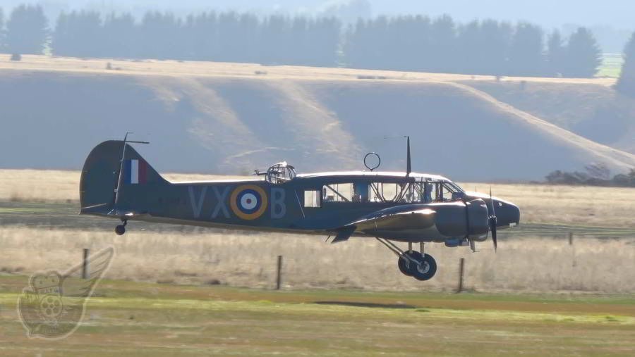 Ryan Southam brings the Avro Anson back to the field after a spirtted display with the North American Harvard NZ1044. Copyright © Historical Aviation Film Unit