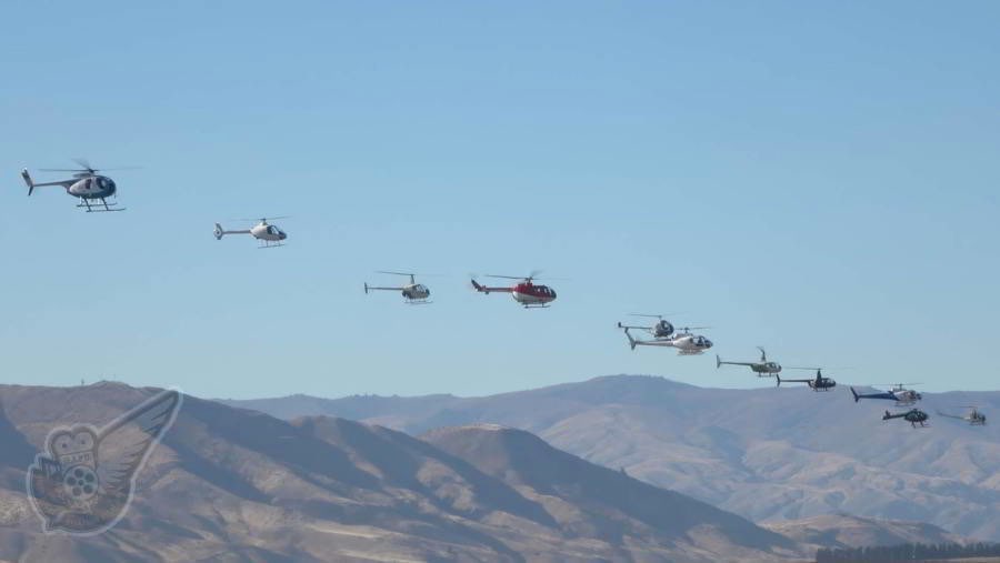 The massed helicopter salute is one of the unique displays flown at Warbirds Over Wanaka, and this year the display was even more poignant as it was a tribute to the late, great, Sir Tim Wallis, the original founder of Warbirds Over Wanaka. Sir Tim had a thriving venison and deer recovery operation in the region, enabled by the development of a helicopter fleet which was used in the rugged Southern Alps mountains. Copyright © Historical Aviation Film Unit