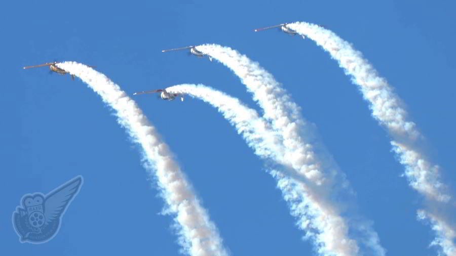 Another image show just how tight the American Eagles L-39 jet formation gets during the four-ship part of their display. There's literally only a couple of metres separating these high speed aircraft, with the result that the display is very impressive. Copyright © Historical Aviation Film Unit
