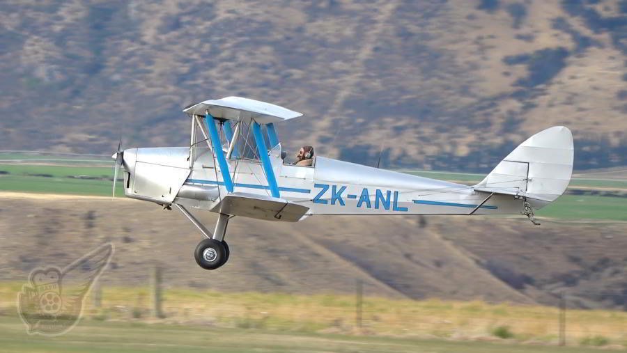 After a lengthy ferry flight from the North Island, de Havilland DH.82a Tiger Moth ZK-ANL arrives in Wanaka at the hands of Ross Brodie. This aircraft was one of several Tiger Moths that displayed as part of the Vintage Classics formation during the airshow. Copyright © Historical Aviation Film Unit