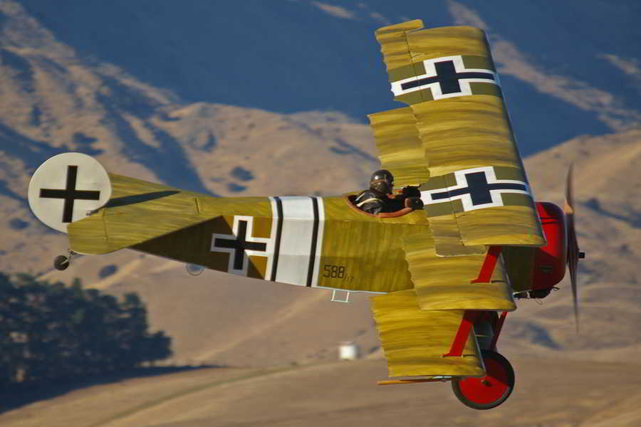Year: 1917 Built: 320 Top Speed: 185 km/h Ceiling: 6,100m Wingspan: 7.19m Height: 2.95m Length: 5.77m Max Weight: 586kg Engine: 110hp Oberursel UR.II rotary Climb: 5.7m/s Range: 300km Armament: 2 x 7.92mm Spandau machine guns This Aircraft: Replica with a 165hp 7-cylinder air cooled Warner Scarab radial engine, built in the USA.