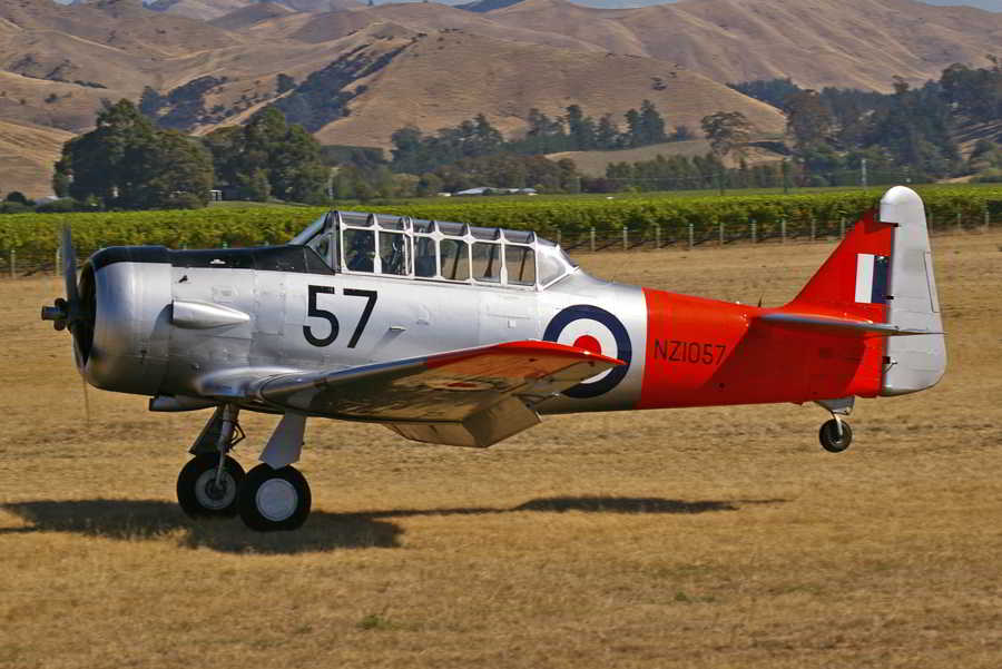 When the RNZAF disposed of its fleet of Harvards in the late 1970’s NZ1057 suffered the ignominy of becoming a playground amusement before it was recovered and subsequently rebuilt from the wheels up to flying condition in 1998. The aircraft is now presented in its 1950’s Royal New Zealand Air Force training livery.