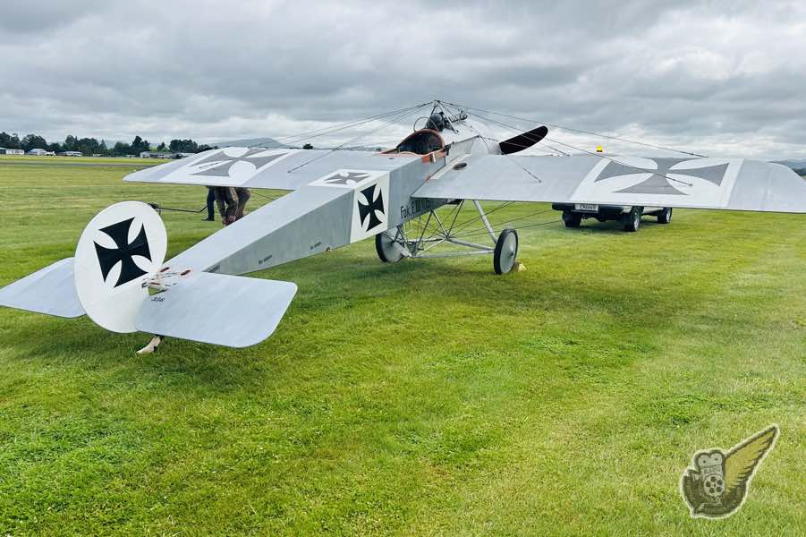 The third of four full scale Fokker Eindecker aircraft in New Zealand has recently been seen on the display line at Omaka Aerodrome in Blenheim, New Zealand. This remarkably accurate World War One reproduction aircraft was built in Germany by Achim Engels, and for a number of years was part of the collection at The Australian Vintage Aircraft Society in Caboolture (Queensland). Recently the aircraft has taken up residence at Omaka, and it is expected to fly once more at some point in 2024.