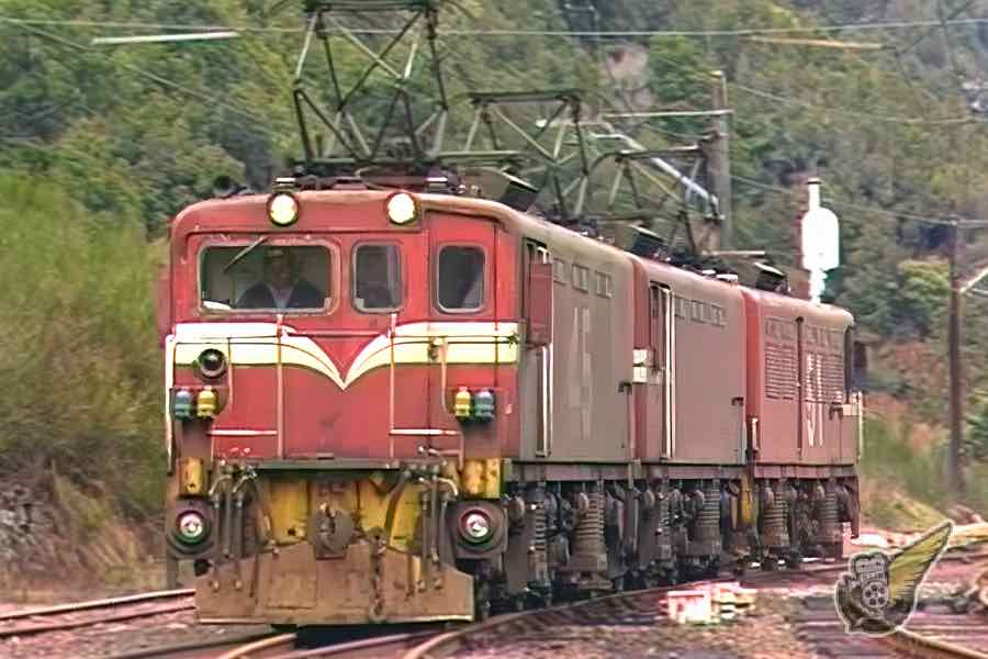 A triple headed Eo class electric locomotive in Otira (New Zealand).