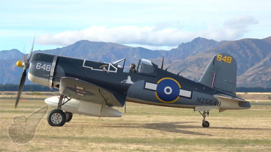 ex-RNZAF Goodyear FG-1D Corsair NZ 5648 has previously been displayed at Wanaka, but the aircraft has only been back in the air for several months, after an extended period on the ground since around 2017. New owner Mike Jones has repainted the aircraft in authentic RNZAF wartime colours, and has sourced a pair of drop tanks which give the aircraft a substantially new profile. Copyright © Historical Aviation Film Unit