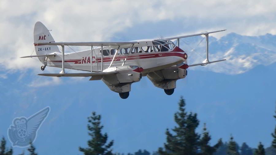 A long-time stalwart of Wanaka (and other) airshows is the Mandeville based de Havilland DH.89a Dominie. This elegant old biplane was one of the New Zealand's original airliners and did stirling work in helping New Zealand companies develop the domestic air routes after the Second World War. Copyright © Historical Aviation Film Unit