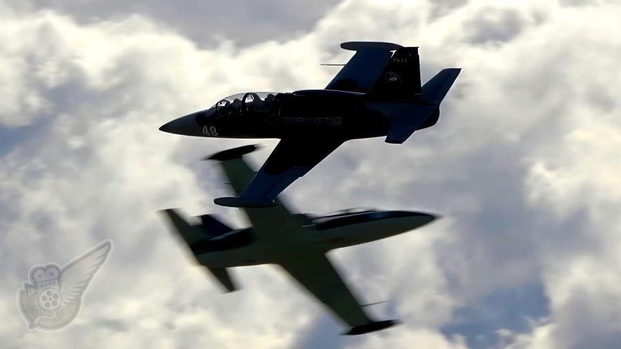 The American Eagles display team, known as the Patriots Jet Team in the USA, used New Zealand based Aero L-39 Albatros jets to show off their high precision jet formation flying. Copyright © Historical Aviation Film Unit