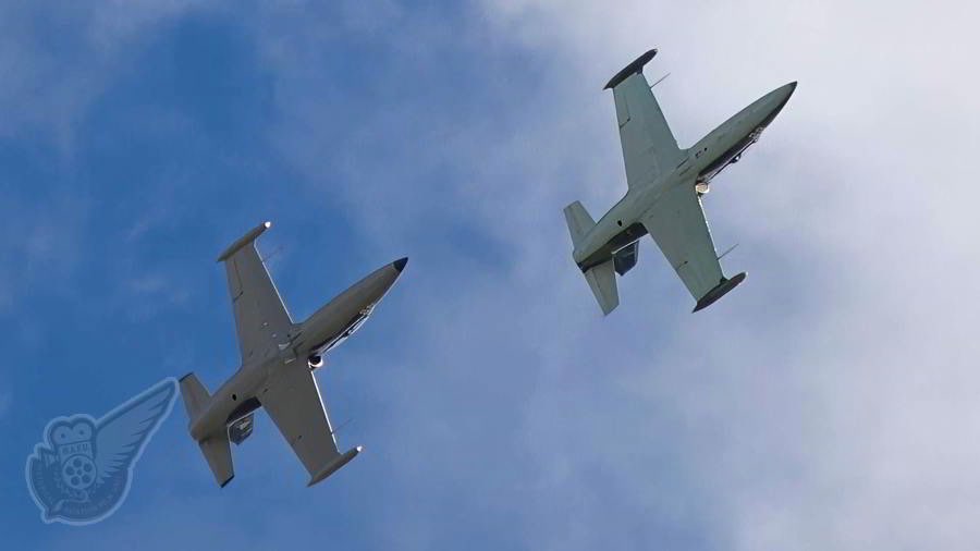 Flying as a four-ship unit initially, the American Eagles L-39 jet formation team then split into two pair formations, each of which engaged the crowd in rapid succession, ensuring that the teams display was highly entertaining, with little 'dead time' as the high performance aircraft repositioned after each pass. Copyright © Historical Aviation Film Unit