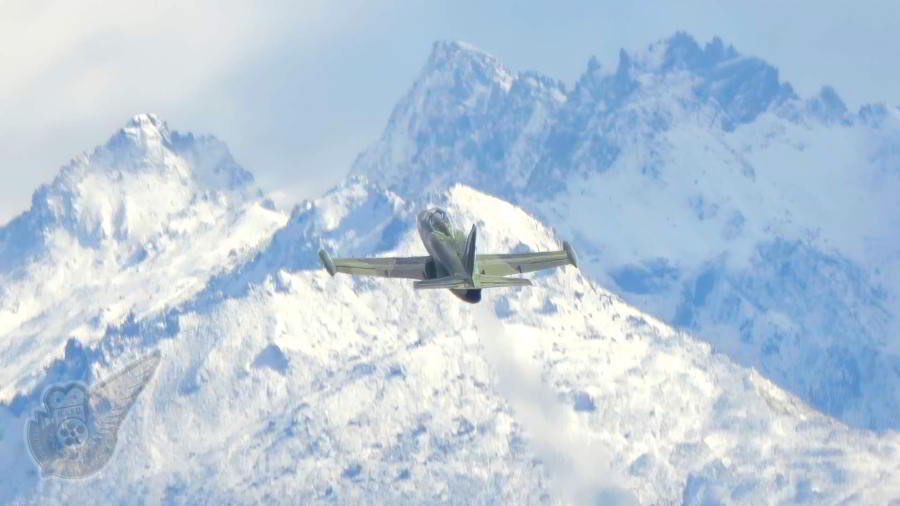 Another shot of the snow covered Southern Alps, which is relatively familiar for long-time attendees at Warbirds Over Wanaka. Oh, and there's an Albatros L-39 in the shot as well!. Copyright © Historical Aviation Film Unit