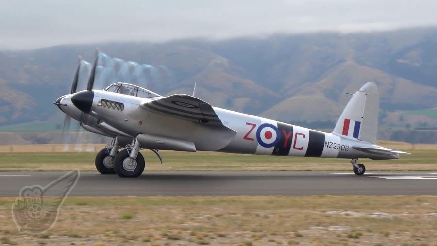 Originally built in Australia for the Royal Australian Air Force, this Mosquito fighter/bomber aircraft was later sold to the RNZAF and served with 75 Squadron as NZ2308/YC-Z. Now fully restored the aircraft once again wears the colour scheme of NZ2308, which attendees at Warbirds Over Wanaka will attest looks stunning when the aircraft is in the air (particularly when banking). Copyright © Historical Aviation Film Unit