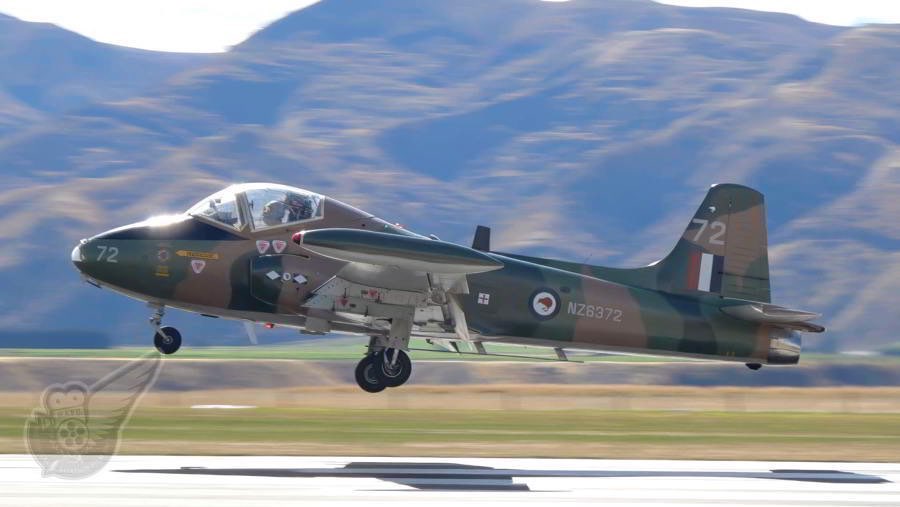This BAC 167 Strikemaster MK.80a was formerly operated by the Royal Saudi Air Force, and it's probably fair to assume that during her military service she didn't get too many chances to land at an alpine airport such as Wanaka. Operated out of Christchurch (South Island) the tan/beige scheme of this aircraft is in stark contrast to the green camouflage scheme worn by the Royal New Zealand Air Force Strikemasters when they were in service. Copyright © Historical Aviation Film Unit