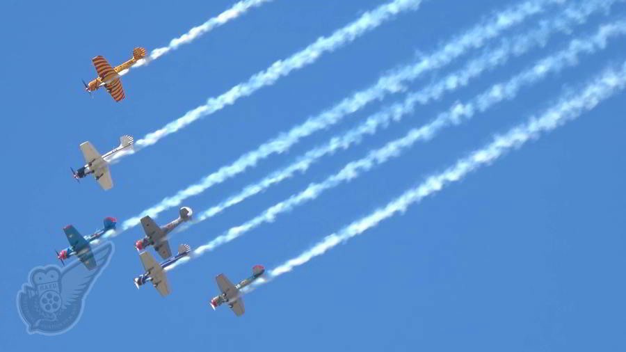 The New Zealand Warbirds Association Harvard formation display team, the 'Roaring 40s' put on yet another striking performance at the show. Copyright © Historical Aviation Film Unit